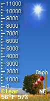 WXSIM forecast: Cloudy in the morning, becoming partly cloudy in the afternoon. Windy. High 14°C. UV index up to 3. Wind north-northeast around 19 mph, gusting to 30 mph. Local station forecast:Partly cloudy with little temp change.