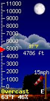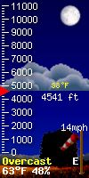 WXSIM forecast: Sunny in the morning, becoming partly cloudy in the afternoon. Very windy. High 17°C. UV index up to 4. Wind northeast around 26 mph, gusting to 36 mph. Local station forecast:Increasing clouds with little temp change, precipitation possible within 24 to 48 hrs.