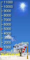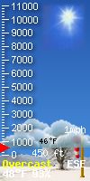 WXSIM forecast: Cloudy. Rain likely. Windy. High 10°C. Wind east-southeast around 29 km/h, gusting to 42 km/h. Chance of precipitation 60 percent. Precipitation mostly between 5 and 10 mm. Local station forecast:Increasing clouds with little temp change, precipitation possible within 24 to 48 hrs.