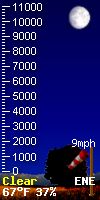 9 Solar Index represents either an absolute scale of solar energy (W/m²) using the station’s recorded maximum or a percentage of computed theoretical solar maximum using the station’s location and time of day. These indices differ most when the sun is low on the horizon. The current scale is shown, and will toggle if it or the icon is clicked.