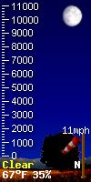 WXSIM forecast: Partly cloudy. Very windy. Low 8°C. Wind north-northeast around 25 mph, gusting to 34 mph.