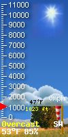 WXSIM forecast: Cloudy in the evening, becoming mostly cloudy to cloudy after midnight. Patchy light fog after midnight. Low 9°C. Wind southwest around 13 km/h, gusting to 29 km/h. Local station forecast:Increasing clouds with little temp change, precipitation possible within 24 to 48 hrs.